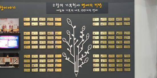 앞서 고창군은 지역에서 활동하는 기부천사들의 명예를 드높이고 나눔을 실천하신 분들의 고귀한 뜻을 기억하며 나눔과 봉사 기부 문화 확산을 위해 군청 로비에 ‘고창군 명예의 전당’을 만들어 운영하고 있다.