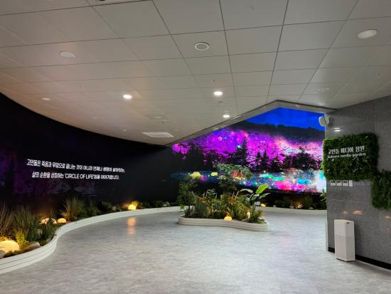 가로 25m, 세로 5.4m의 대형 스크린은 320×160㎜의 LED모듈 2000개 이상을 조합한 초고화질 LED 커브드 화면으로 색채의 선명도와 몰입감으로 관람객들의 탄성을 자아낸다.