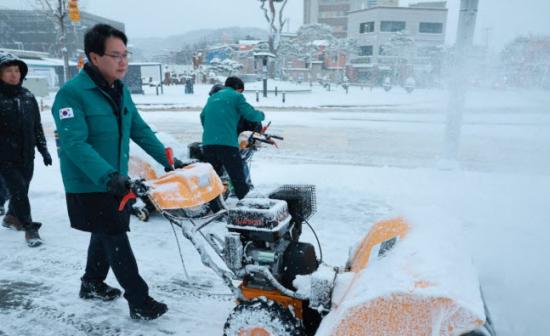 특히 출근길·등교길 통행을 위해 ‘인도용 제설기’가 첫 가동에 들어갔다.