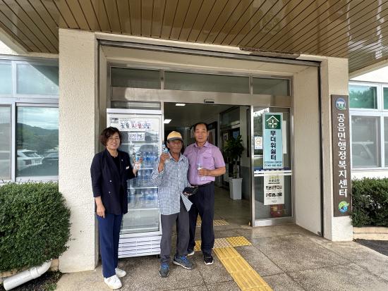 ‘사랑 샘물 냉장고’는 공음면 주민행복센터 1층에 비치된 냉장고로, 무더운 여름철 누구나 자유롭게 시원한 생수를 무료로 마실 수 있도록 한 무더위 쉼터 개념의 복지 서비스다.