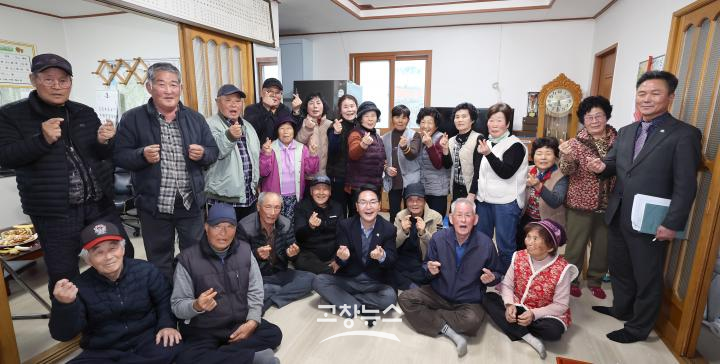 | 심덕섭 군수가 흥덕면 경로당을 방문해 어르신들과 함께 기념사진을 찍고 있다.(고창군 제공) |