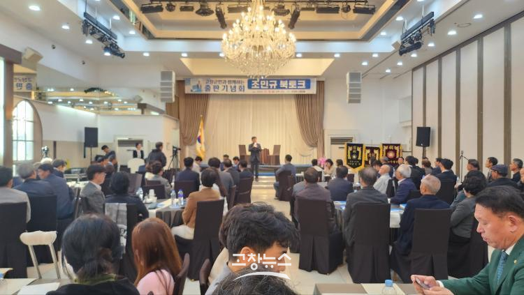 | 조민규 고창군의장 '진정성의 가치' 출판기념회에서 인삿말을 하고 있다.2025.11.9/고창뉴스 |