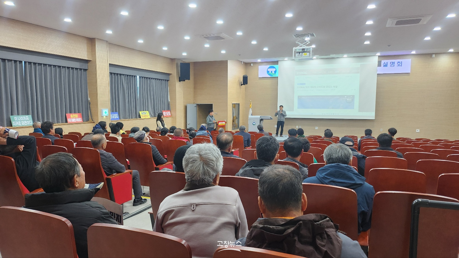 | 고창군 송전선로 건설 반대 고창군대책위(위원장 문병채)와 고창군농민회는 20일 오후 고창군 농업인회관 3층 대강당에서 하승수 변호사를 초청해 송전선로 문제 진단과 대안을 위한 주민설명회를 개최했다.2025.11.20/고창뉴스 |