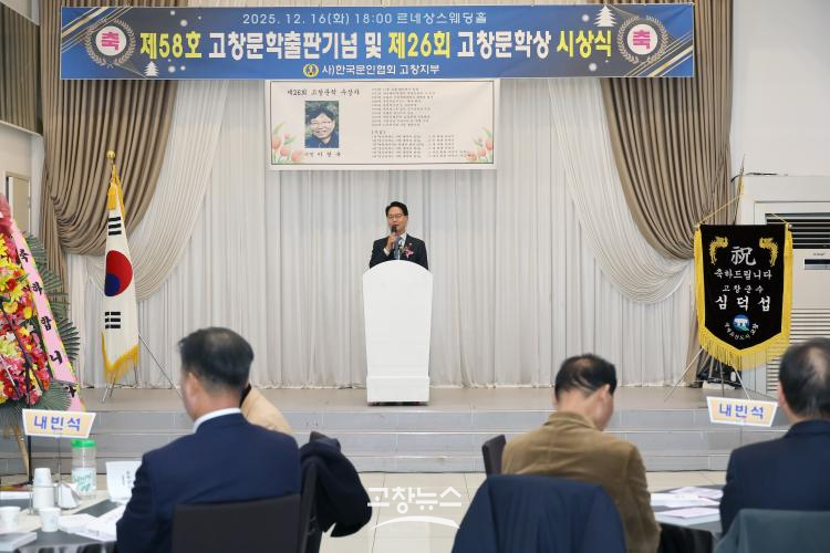 한국문인협회 고창지부(지부장 김영환) 주관으로 열린 이날 행사에는 심덕섭 군수, 조민규 군의장, 이현곤 문화원장을 비롯해 박종은, 이행용, 표순복 등 역대 문인협회 회장 및 지역 문인과 문화예술 관계자들이 참석해 고창 문학의 깊이와 성장을 함께 나눴다.
