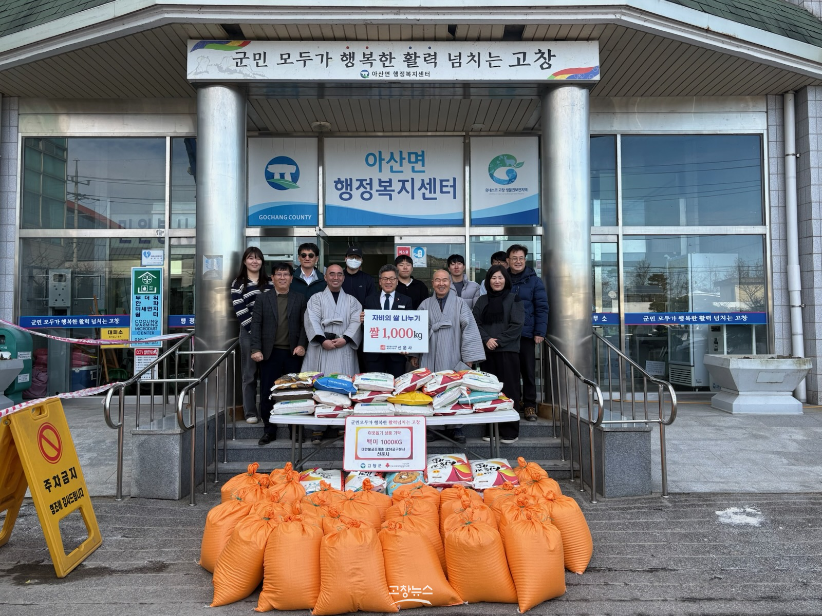 [고창뉴스]선운사는 6일 공음면(면장 김애숙)과 아산면(면장 정재택) 주민행복센터에 각각 사랑의 쌀 1000㎏씩, 총 2000㎏을 기탁했다.