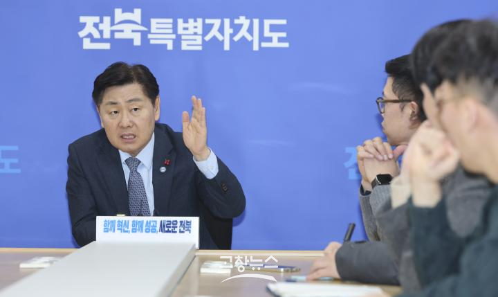 | 김관영 도지사가 금융중심지 지정 신청서 제출과 관련해 브리핑하고 있다.(전북도 제공) |