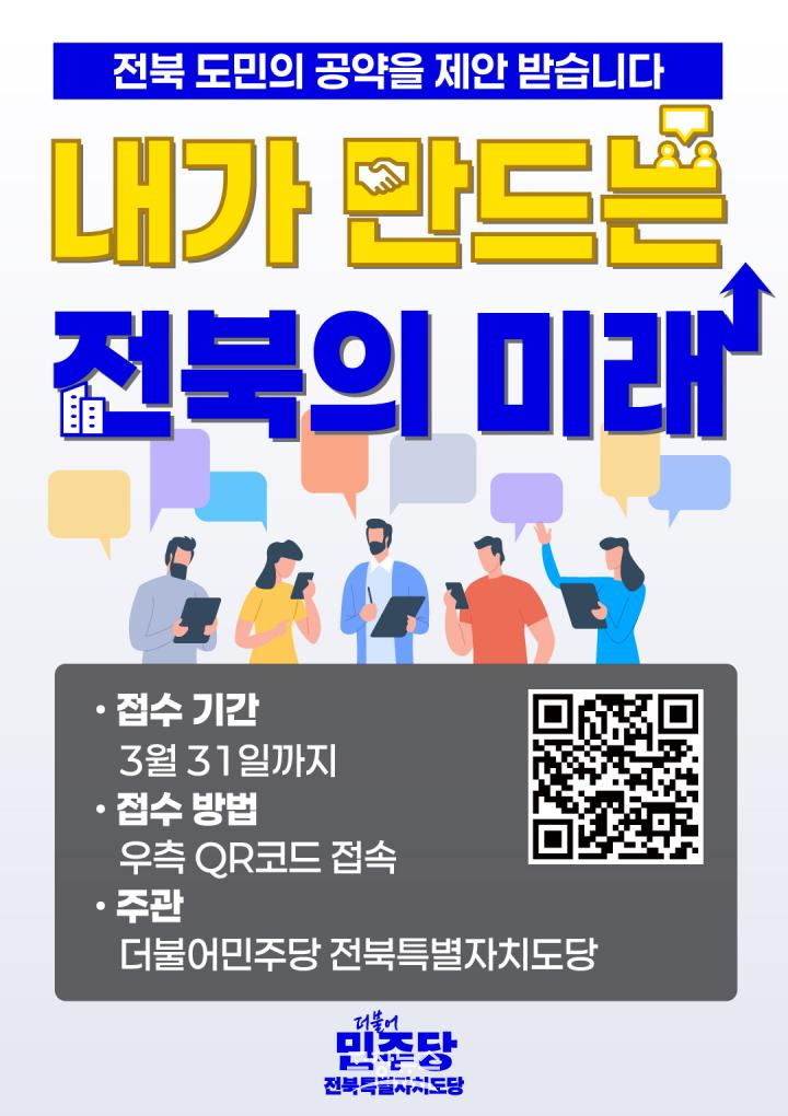 참여 방법은 도민들의 접근성과 참여 편의를 높이기 위해 ▲거리 현수막 QR코드 ▲더불어민주당 전북특별자치도당 홈페이지 배너 QR코드 ▲웹카드 QR코드 접속 등을 통해 가능하다.
