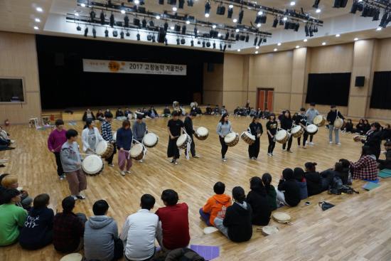 선생님들과 함께 판굿을 뛰는 ‘합굿’에서부터, 전수생들끼리 생활 점검을 하면서 친목도모를 하는 ‘중풀이’, 1주일 동안 배운 내용을 선생님과 전수생들 앞에서 발표하는 ‘전수생 발표회’, 80여 명의 고창농악보존회원과 함께 판굿을 하는 ‘굿모임’까지 기초에서 공연까지 완벽하게 마무리 된다.