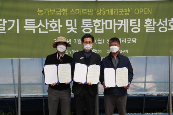 스마트팜 기술을 접목시켜 연중 딸기 수확이 가능하게 하는 것이 이번 협약의 주요 내용이다. 이를 위해 군은 행정적 지원, 상하농원은 마케팅·시설지원을 하고, 딸기연구회는 회원들이 직접 딸기를 재배한다.