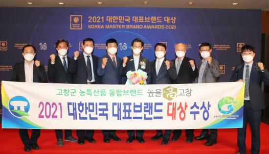 20일 고창군에 따르면 이날 오후 신라호텔에서 열린 ‘2021대한민국 대표브랜드 대상 시상식’에서 고창군 농특산품 브랜드인 ‘높을고창’이 농특산물 공동브랜드 부문 대상으로 최종 선정됐다.