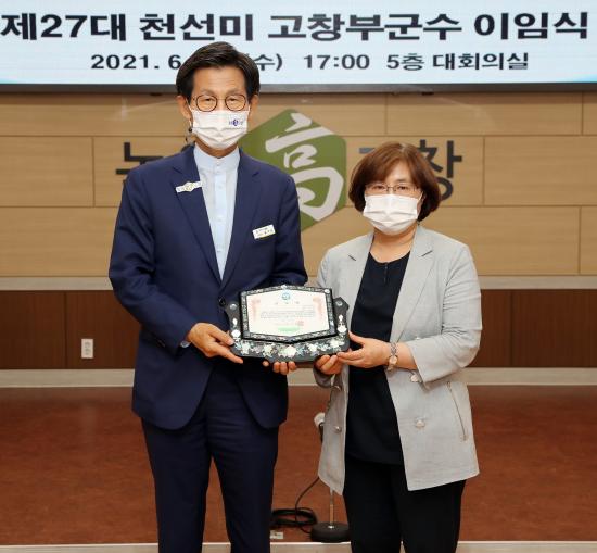 고창군 최초 여성 부군수로 이름을 올렸던 제27대 천선미 부군수가 1년6개월의 임기를 마치고 30일 오후 유기상 군수와 간부 공무원들이 참석한 가운데 간소하게 이임식을 가졌다.