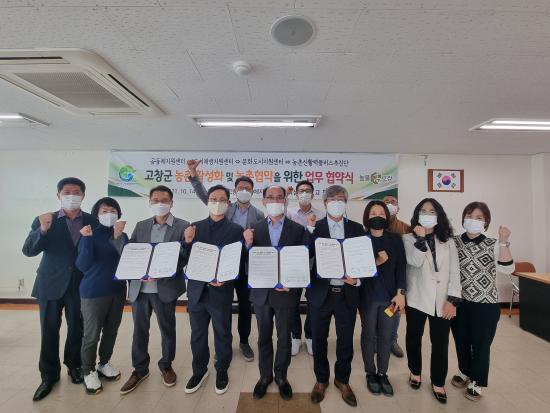 고창군은 공동체지원센터와 도시재생지원센터, 문화도시지원센터, 농촌신활력플러스추진단과 14일 오후 고창군공동체지원센터 회의실에서 2022년 농촌협약 공모사업 선정과 농촌의 활성화를 위한 업무협약을 맺었다.
