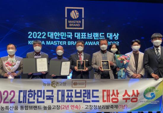 19일 고창군에 따르면 이날 오후 서울 신라호텔에서 열린 ‘2022 대한민국 대표브랜드 대상 시상식’에서 ‘높을고창’이 농특산물 공동브랜드 부문 대상으로, ‘청보리밭 축제’가 생태관광 축제 부문 대상으로 선정됐다.