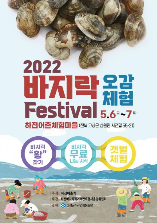 권영주 하전어촌계장은 “바지락이 이맘때쯤 살이 통통하게 올라 가장 맛있을 시기이므로 가족과 함께 ‘고창 바지락 축제’에 오셔서 맛과 영양이 풍부한 고창의 명품 수산물을 즐기며 뜻깊은 가정의 달 5월을 보내길 바란다”고 밝혔다.