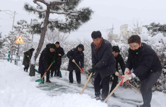 심덕섭 고창군수도 새벽부터 현장에 나와 제설상황을 점검하고, 도심지 눈 치우기에 투입된 공직자들을 격려했다.