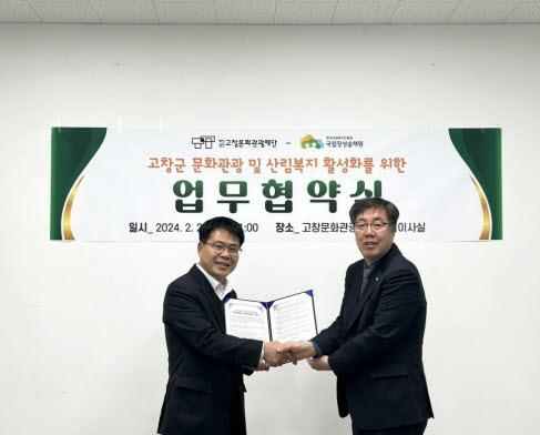 협약은 △고창군 치유문화도시 특색을 반영한 산림관광형 프로그램 공동 개발 운영 △국립고창치유의숲 자원을 활용한 산림치유 투어 프로그램 운영 △기관 간 협업을 통한 고창군민 및 취약계층 대상 산림문화행사 추진 등 상호발전과 협력에 대한 내용을 담았다.