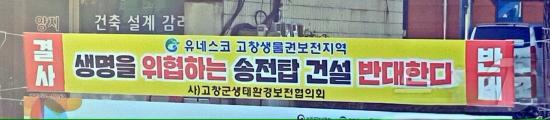 8일 낮 고창군 시내 곳곳에는 한국전력공사의 송전선로 관련 사업설명회를 알리는 현수막이 내걸렸다. 그동안 일부 주민들 사이에서 소문만 무성하던 송전선로 건설계획이 사실상 공개적으로 수면으로 올라오게 되는 셈이다.