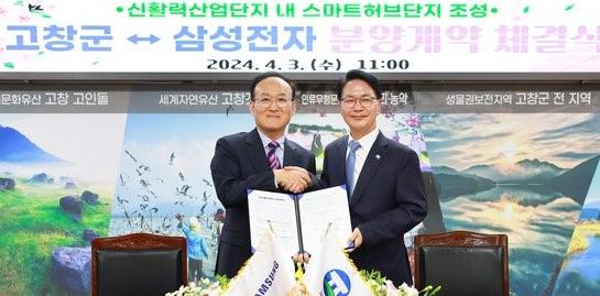 심 군수는 "최근 어려운 경제 상황에도 불구하고 고창군에 투자하기로 결정해 준 삼성전자에 진심으로 감사드린다"며 "앞으로도 더욱 공격적인 기업 유치로 일자리를 창출하고 지역경제를 살리는 데 최선을 다하겠다"고 말했다.