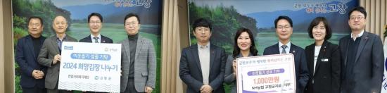 또 고창신협(이사장 손영찬)에서 500만원을, 성송면 정다운사람들, 고창노인요양원, 대산면 강원유통에서 각각 100만원의 성금을 기탁했다. 이는 전북공동모금회를 통해 관내 저소득 취약계층에 전달될 예정이다.