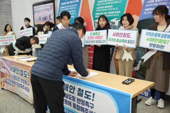 서명운동은 앞서 지난달 22일 고창군청에서 열렸던 ‘서해안철도 국가계획 반영 촉구 결의 기자회견’에서 전북 군산, 고창, 부안, 전남 영광, 함평 5개 시군 지자체장이 모여 철도망 구축의 필요성을 제기하고 서해안 철도노선 반영을 촉구에 따른 후속 조치다.