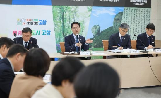 한편, 고창군은 민선 8기 공약 이행을 위해 분기별 공약사업 추진상황 보고회를 개최하고 있으며, 공약이행평가단 평가회의를 개최해 공약추진 상황을 투명하게 점검하고, 공약사업 추진에 박차를 가할 예정이다.