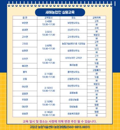 기타 자세한 내용은 고창군농업기술센터 홈페이지 공지사항을 통해 확인 할 수 있다.