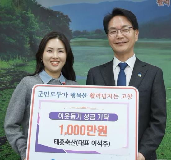 심덕섭 군수는 “이웃을 생각하는 태흥축산 이석주 대표와 회사 관계자분들의 사랑과 관심이 고창군을 더욱 따뜻하게 만들어주고 있다”며 “앞으로도 따뜻한 고창을 만들기 위해 끊임없이 노력하겠다”고 감사의 마음을 전했다.