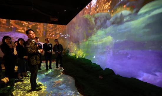 | 심덕섭 고창군수가 선운미디어갤러리 내부 전시작품을 관람하고 있다. |