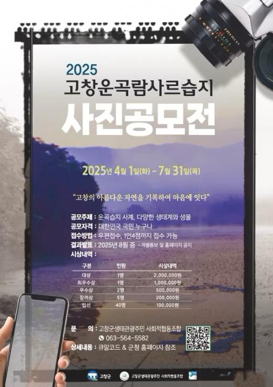 7월까지 진행하는 공모전은 ‘고창의 자연을 기록하고 마음에 잇는다’ 주제로, 운곡람사르습지의 생태적 가치와 아름다움을 널리 알리기 위해 마련됐다.