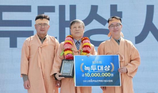 | 신영우(가운데) 충북대 명예교수가 제18회 녹두대상을 수상했다.(고창군 제공, 재판매 및 DB금지) |