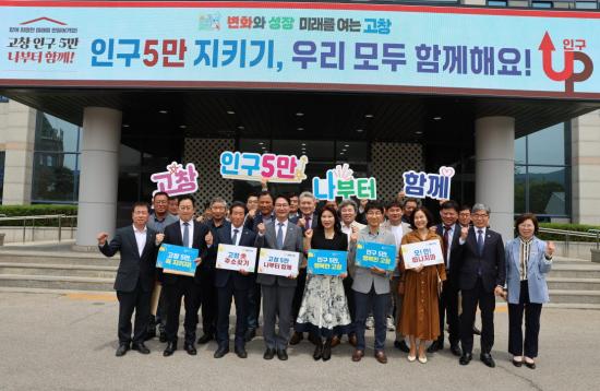 이에 따라 고창군은 인구 위기 극복을 위해 '고창 5만, 나부터 함께'라는 슬로건으로 지역사회 전체의 공감대 형성과 실천운동 확산을 위한 고창인구 5만 지키기 운동을 적극 추진하고 있다.