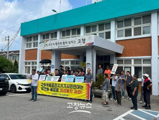 | 고창군 심원면이장단협의회등 지역 17개 사회단체는 18일 오전 11시 심원면 행정복지센터 광장에서 기자회견을 열고 '리조트와 골프장 건설을 포함한 종합테마파크 사업을 강력히 지지하는 성명서를 발표했다. |