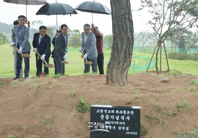 | 심덕섭 군수, 조민규 의장, 임정호 의원, 오철화 체육회장이 26일고창 청보리파크장 개장 기념식수를 하고 있다.(고창군 제공) |