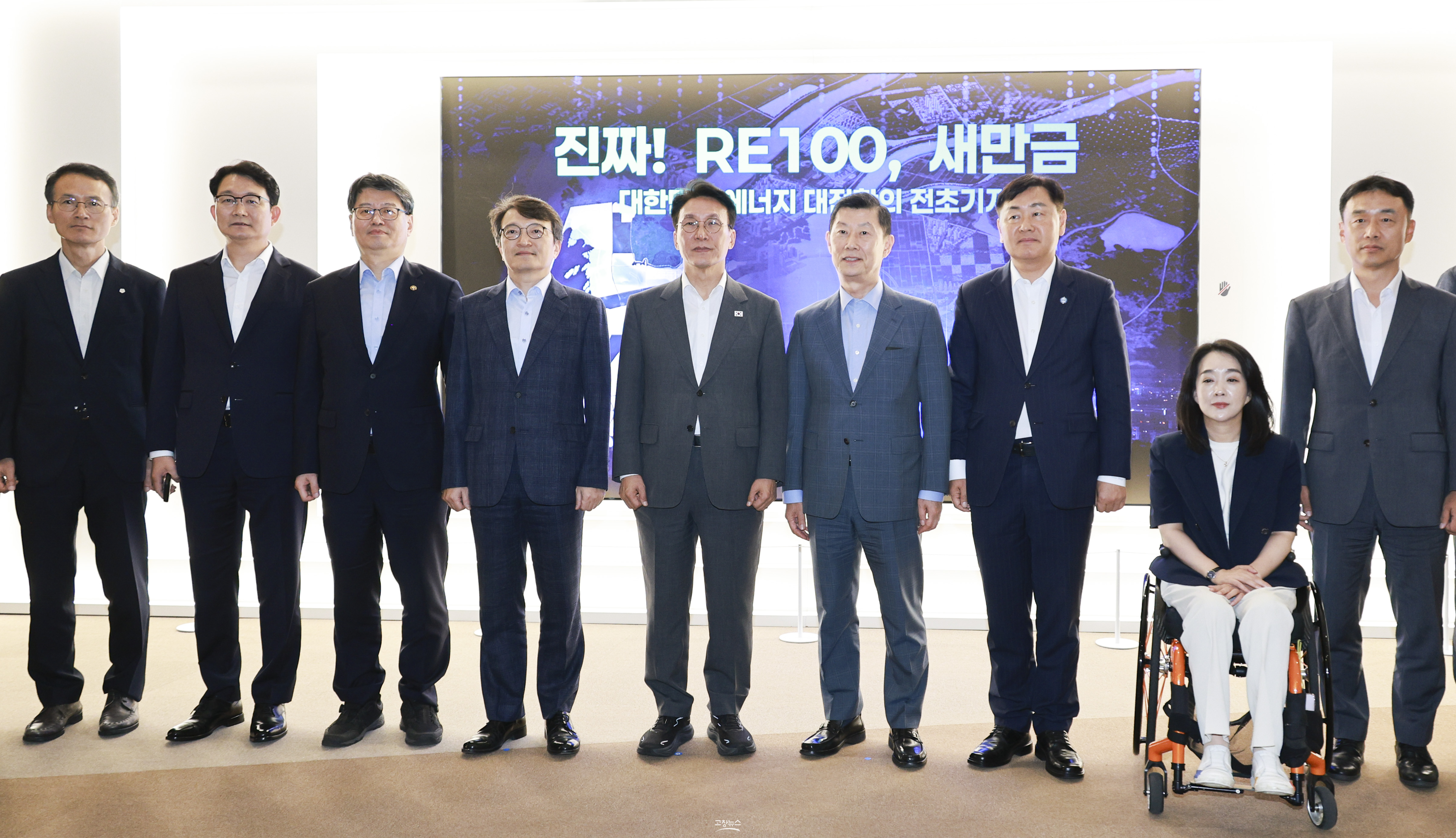 | 김민석 국무총리가 3일 새만금개발청을 방문하여 김관영 전북특별자치도지사와 김의겸 새만금개발청장, 김홍국 새만금위원회 민간위원장 등 참석자들과 기념촬영을 하고 있다.(전북자치도 제공) |