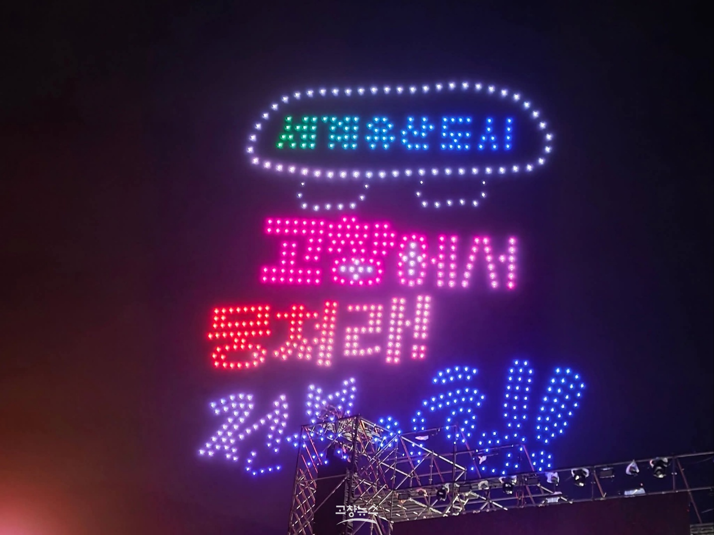개막식의 하이라이트인 드론라이트쇼에서는 대회 마스코트인 뿔제비갈매기와 동리 신재효 선생, 이재 황윤석, 전봉준 장군 등 고창의 인물, 문화, 미래 비전을 하늘 위에 형상화해 관람객들에게 깊은 감동을 선사했다.