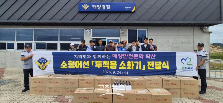 부안해양경찰서(서장 박생덕) 고창파출소는 한빛원전과 협력해 지역사회 상생 협력사업 일환으로 투척용 소화기 400개를 고창 관내 어선 200여척을 대상으로 배부했다.