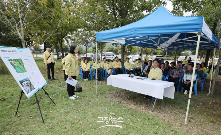 | 심덕섭 군수가 14~15일 이틀간 고창군 주요 사업 현장을 직접 방문해 진행 상황을 점검하고 주민들과 소통하는 시간을 가졌다.고창군 자연생태원 건립현장 설명회(고창군 제공) |