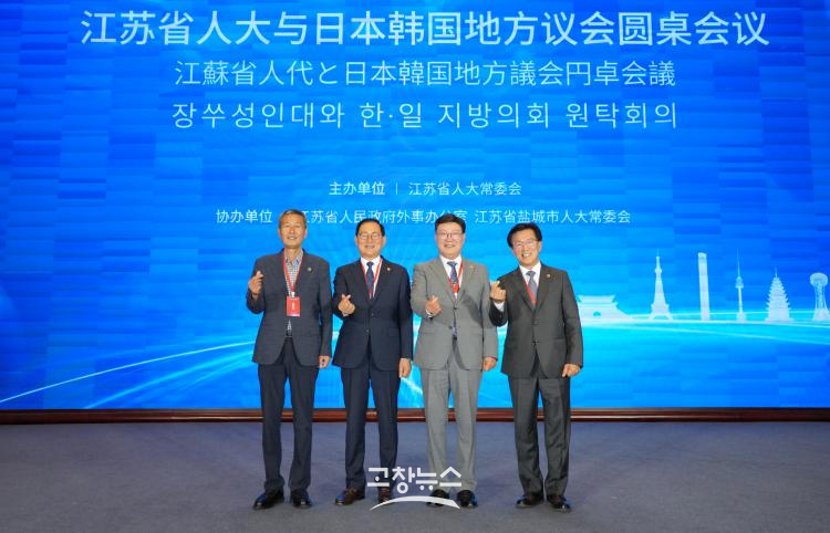 | 한·중·일 지방의회 협력 원탁회의에 참석한 문승우 도의장(왼쪽 세번째)/전북도의회 제공 |