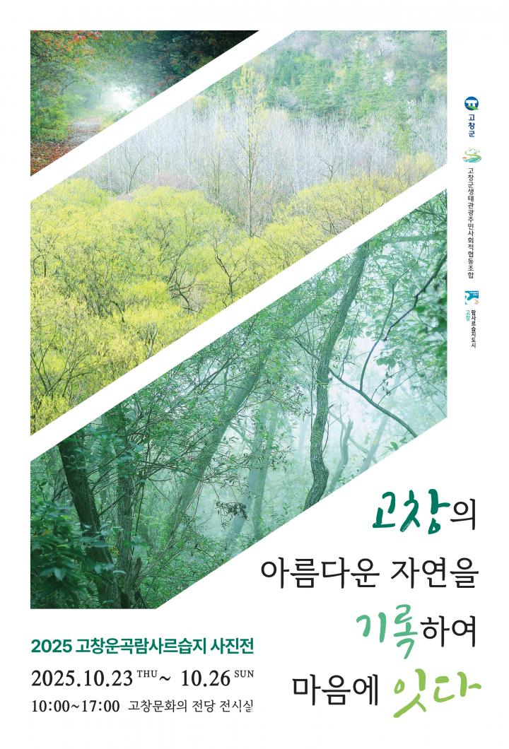 전시회는 ‘고창의 아름다운 자연을 기록하여 마음에 잇다’라는 주제로 열리며, ‘2025 운곡람사르습지 사진공모전’에서 선정된 50여점의 우수 작품이 전시된다.