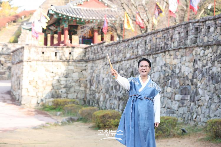 | 심덕섭 고창군수가 고창읍성에서 모양성제를 홍보하고 있다. |