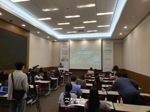 | 고창식품산업연구원 연구진이 부산에서 개최된 국제학술대회에서 지역 농특산물 기능성 연구성과를 발표하고 있다.(연구원 제공) |