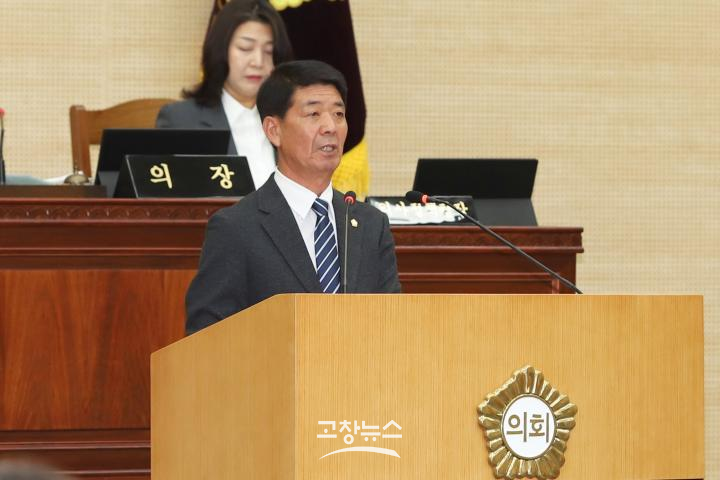 | 박성만 의원이 제320회 고창군의회 제2차 정례회 제1차 본회의에서 5분 발언을 하고 있다.(고창군의회 제공) |