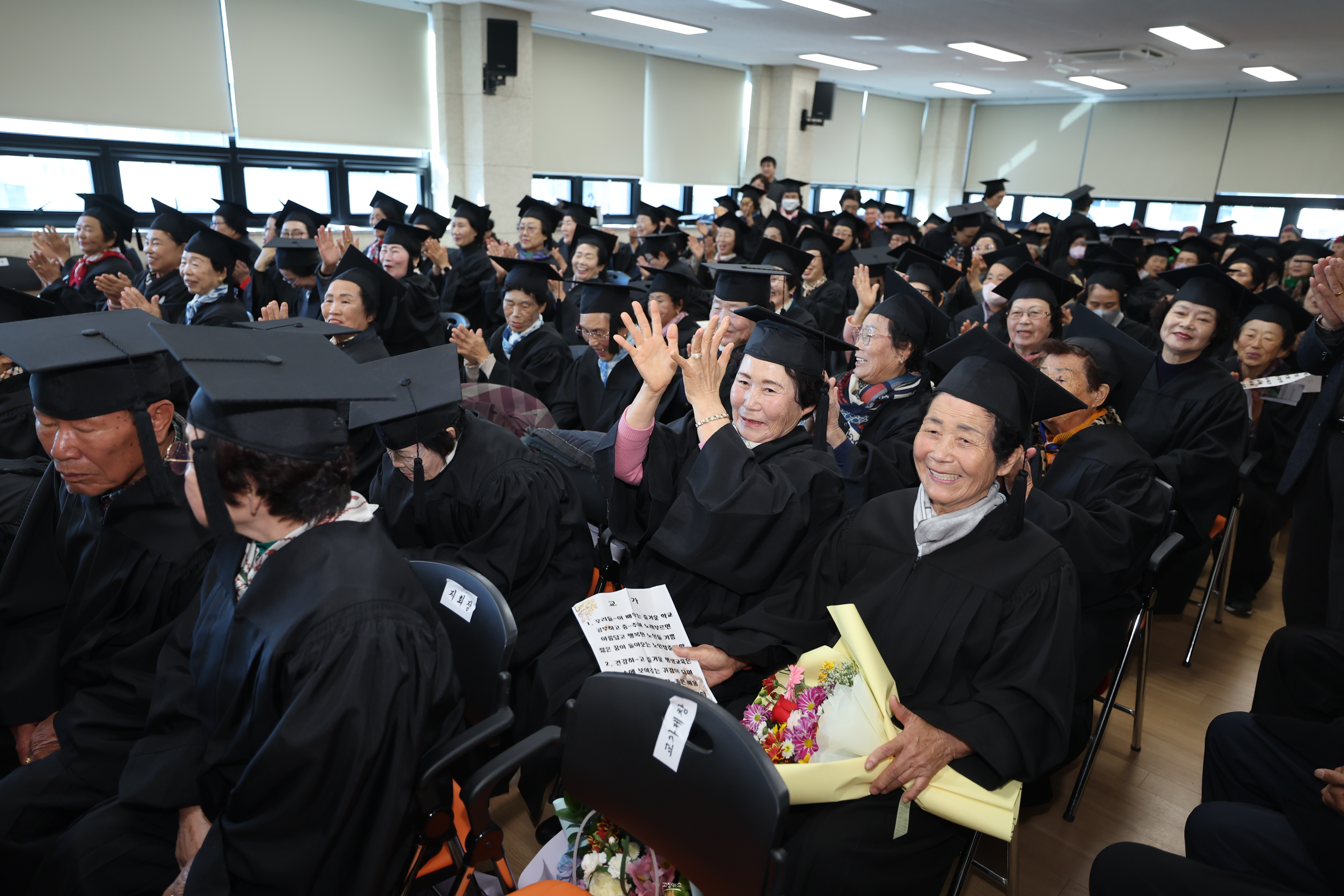 이번 졸업식은 지난 4월 입학해 약 8개월간 노년의 지혜와 활력을 채운 어르신들이 영광스러운 졸업장을 받았다.