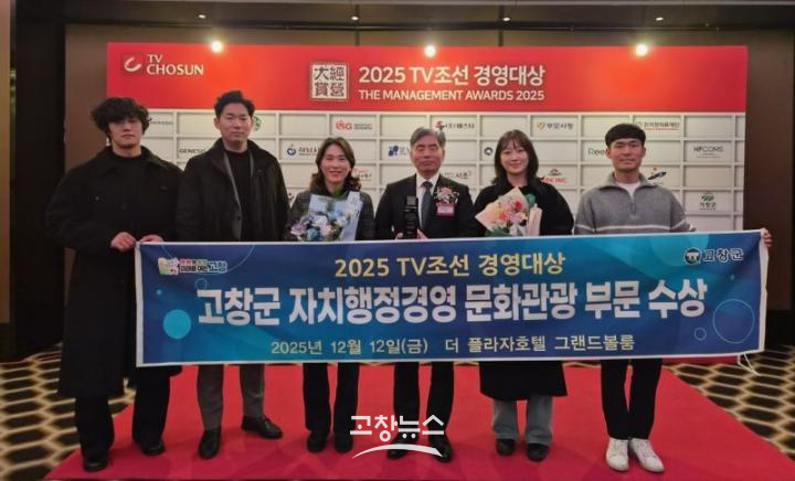 TV조선 경영대상은 기획재정부, 과학기술정보통신부, 행정안전부 등이 후원하는 시상으로, 고창군은 세계유산을 중심으로 한 관광 인프라 확충과 지역 정체성을 살린 축제 운영에서 높은 평가를 받았다.
