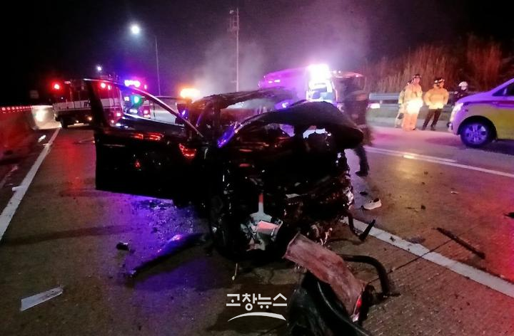 전북경찰청과 전북특별자치도소방본부 등에 따르면 4일 오전 1시 23분께 고창군 고수면 우령리 서해안고속도로 상행선 74.8㎞ 지점(고창분기점 인근)에서 차량 3대가 추돌하는 1차 사고가 발생했다. 당시 음주운전이 의심되는 차량이 1차로에 정차해 있었고, 이를 뒤따르던 차량 2대가 잇따라 충돌한 것으로 파악됐다.