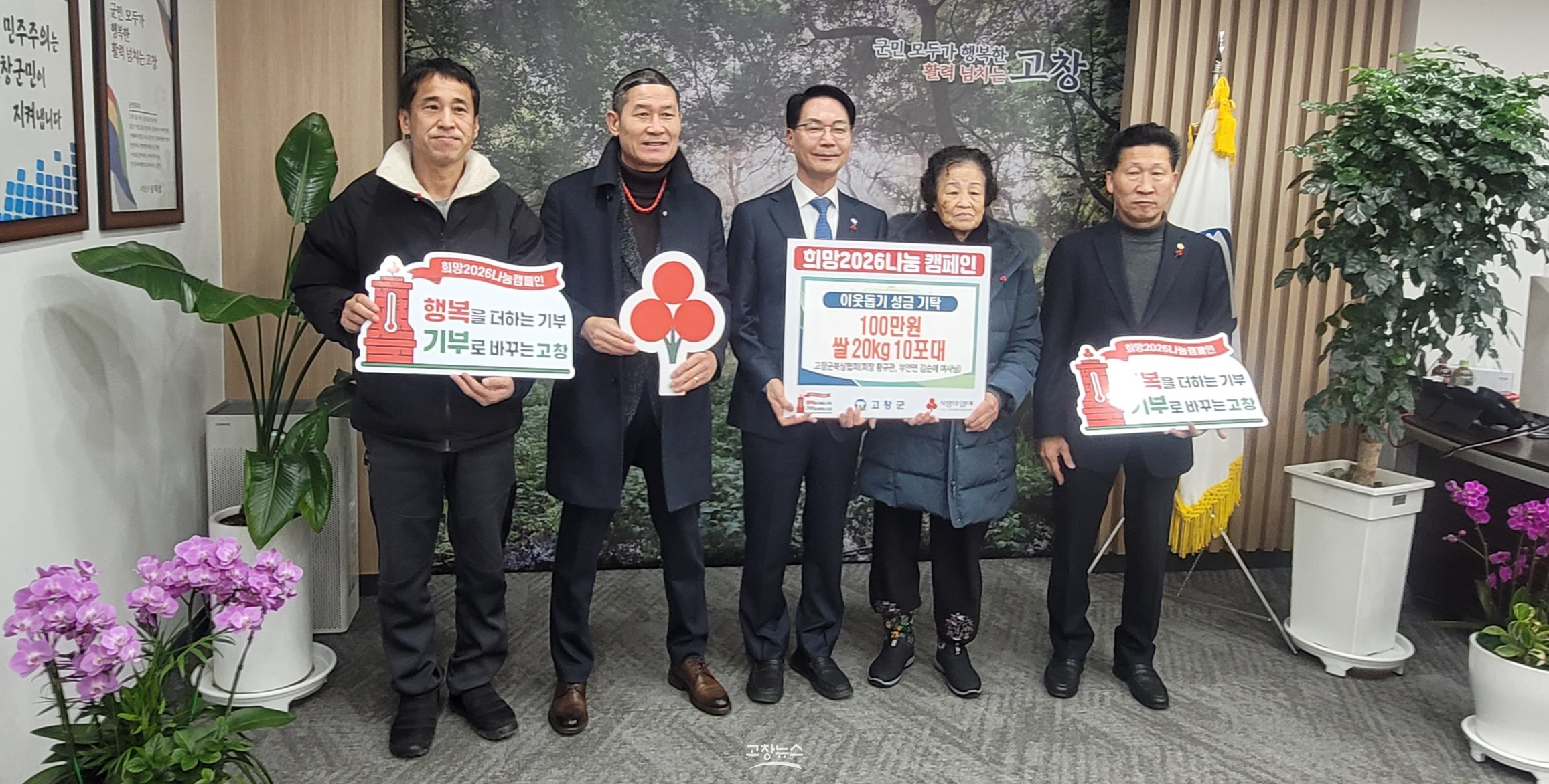 또 같은 날 공연단체 야씨패밀리(단장 김도연)는 연말 고창읍 종로약국 앞에서 진행한 버스킹을 통해 성금 173만5000원을, 석정힐CC(석정레져㈜)는 성금 1000만 원을 전달했다.