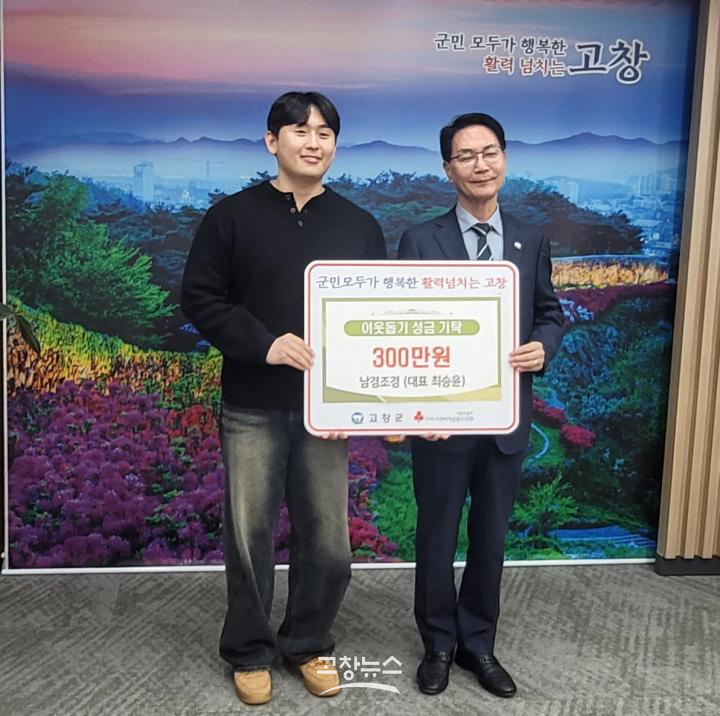 | 최승윤 남경조경 대표 이웃돕기 성금 기탁(고창군 제공) |