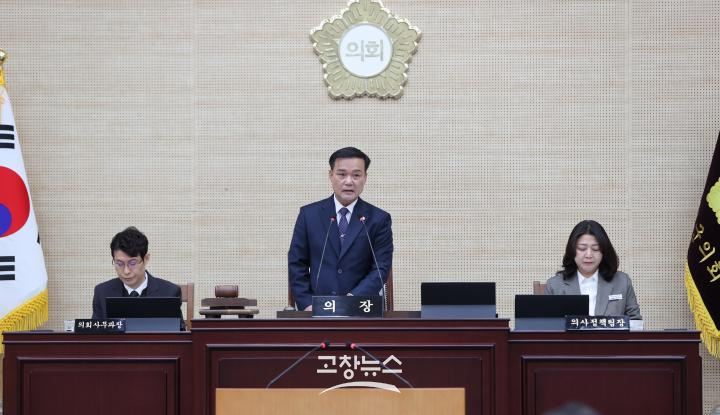 조민규 의장은 개회사에서 “기존에 의회에 허용되던 고창군 전자문서시스템 접근을 별도의 안내나 협의 없이 일방적으로 변경한 조치에 대해 깊은 유감을 표한다”며 “의회의 정보 접근권을 제한하는 것은 정당한 의정활동을 위축시킬 우려가 있다”고 지적했다.