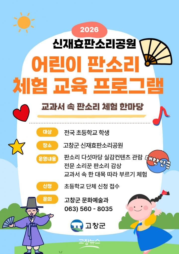 | 고창 신재효판소리공원 초등생 판소리 체험교육 안내문(고창군 제공) |