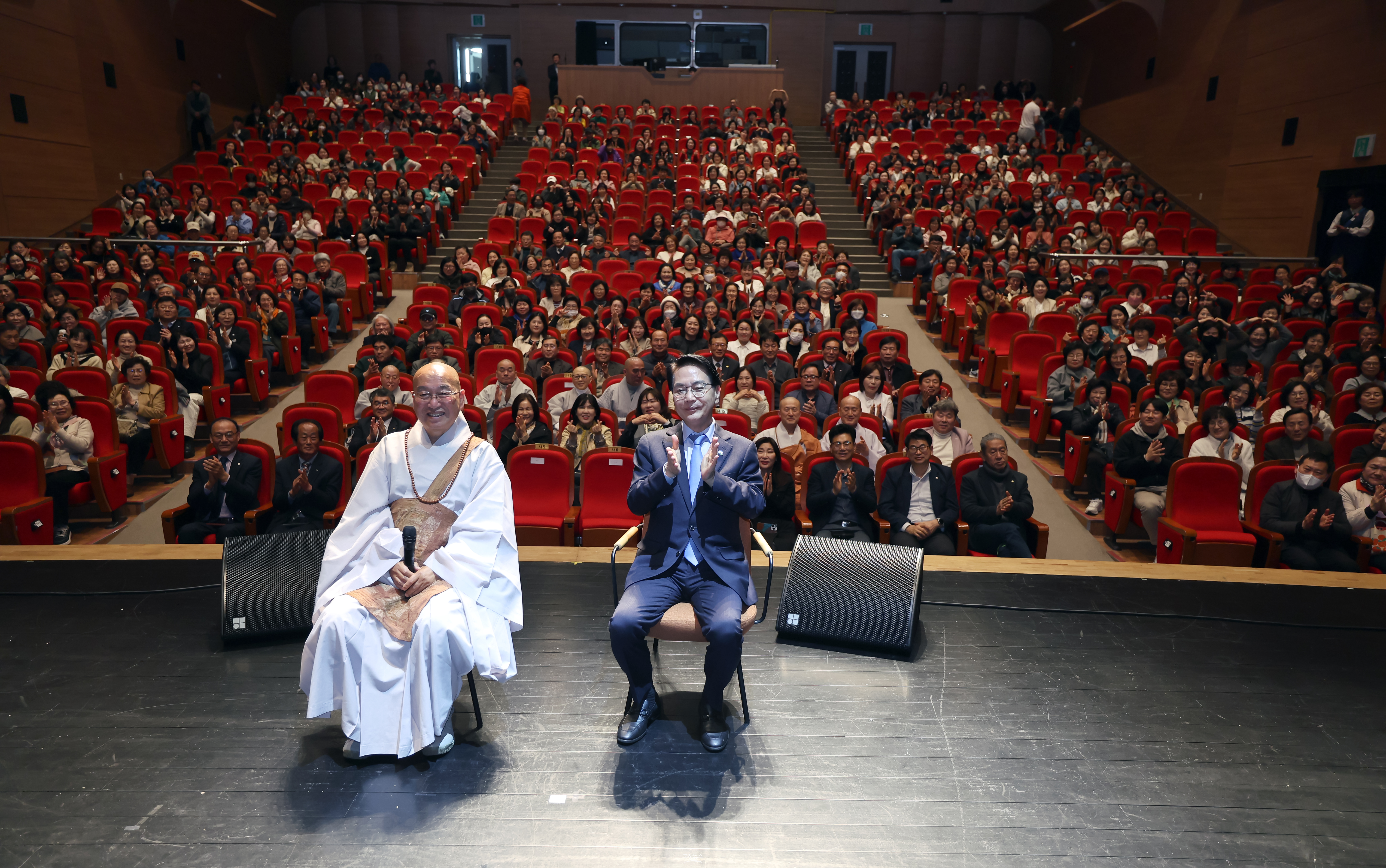 스님의 한 마디 한 마디에 객석 곳곳에서는 고개를 끄덕이거나 눈시울을 붉히는 모습이 이어졌고, 때로는 웃음이 터져 나오며 강연장은 화기애애한 분위기로 채워졌다.